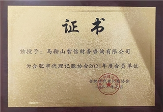 2021年荣获安徽省代理记账行业协会会员单位